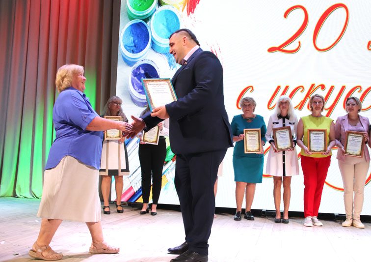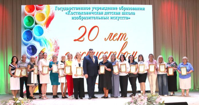 Костюковичская школа изобразительных искусств отметила свой 20-летний юбилей. Праздничное мероприятие состоялось 1 сентября в районном Центре культуры и собрало педагогов, учащихся, их родителей и, конечно же, почетных гостей, среди которых – председатель районного Совета депутатов Лариса Герасимова, заместитель председателя райисполкома Валентина Манушенко, начальник отдела культуры райисполкома Сергей Буленков.