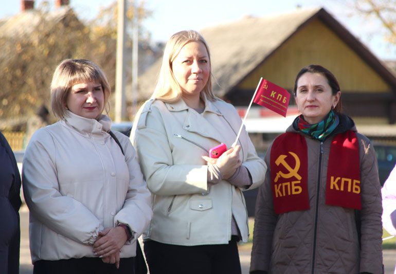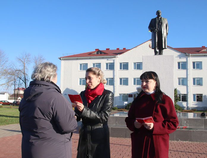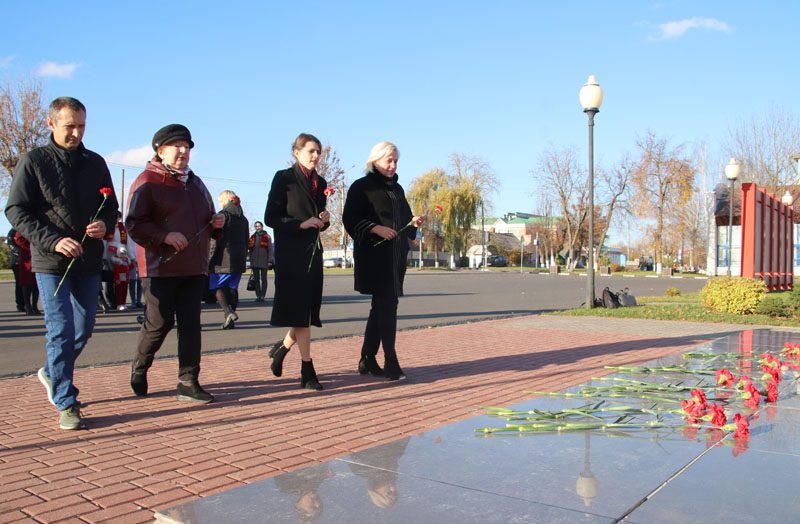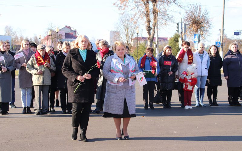 В преддверии праздника Дня Октябрьской революции в Костюковичах представители общественных объединений, организаций и члены Коммунистической партии Беларуси возложили цветы к памятнику Ленина.