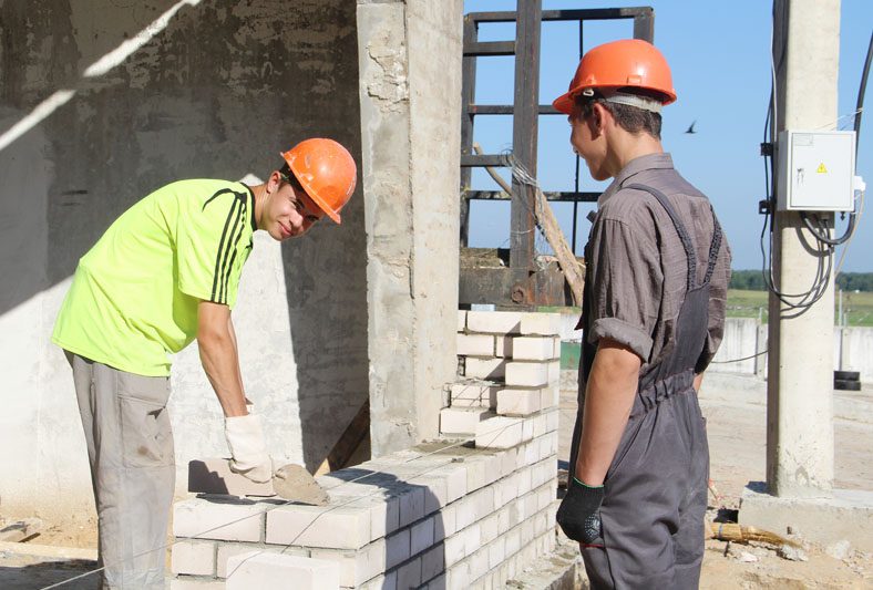 Вместе с опытными строителями работают молодые кадры. Кирилл и Никита пришли в «Цемстройремонт» после окончания Костюковичского профессионального колледжа.
