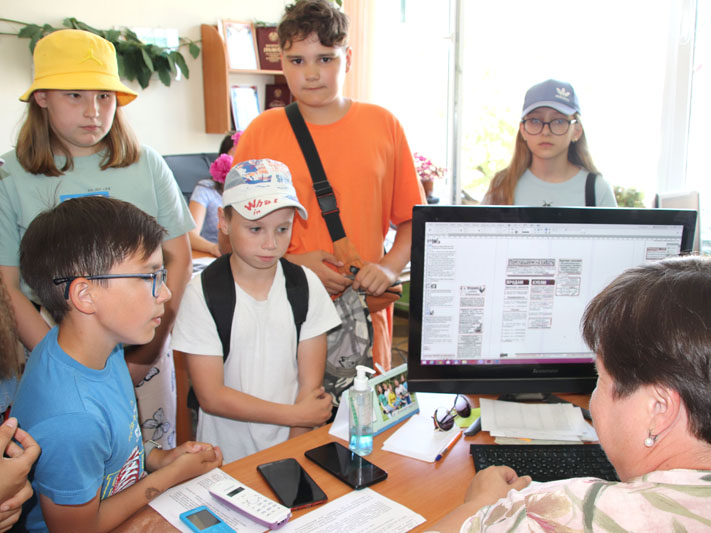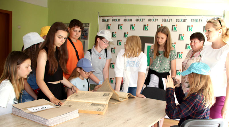 Ребята познакомились с корреспондентами, которые рассказали весь цикл создания газеты: от получения материала до размещения статей, заголовков и фотографий на газетной полосе и отправки электронной версии на печать в типографию им. Спиридона Соболя в Могилев. Оттуда газета доставляется на почту и распространяется среди подписчиков.