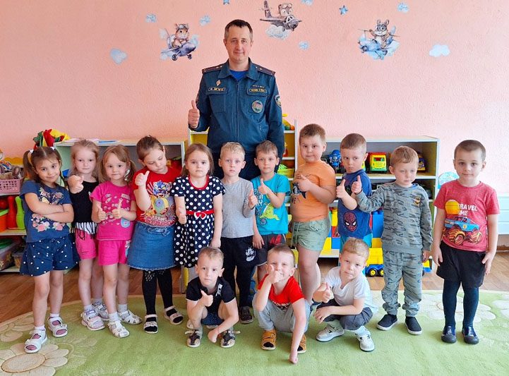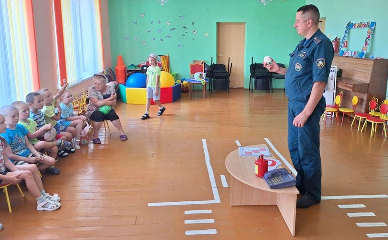 В рамках акции «Каникулы без дыма и огня», которая ежегодно проводится в период летних каникул, инспектор сектора пропаганды и взаимодействия с общественностью районного отдела по чрезвычайным ситуациям Павел Добрыднев организовал встречу с дошкольниками, чтобы еще раз рассказать детям о правилах безопасности при пожаре и других чрезвычайных ситуациях, а также напомнить базовые правила поведения в быту, в лесу, на водоеме.