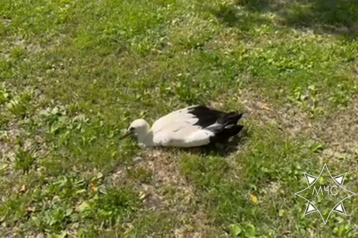 Жители агрогородка Бороньки Костюковичского района заметили выпавшего из гнезда аистенка и обратились за помощью к спасателям, рассказали в Могилевском областном управлении МЧС.