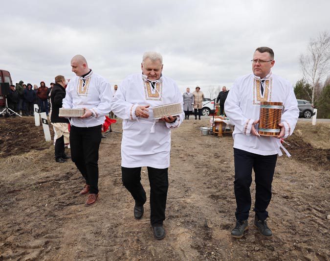 На традиционном хлеборобском обряде присутствовали глава Костюковичского района Вячеслав Моксачев, председатель районного Совета депутатов Лариса Герасимова, член Совета Республики Национального собрания Республики Беларусь Игорь Сергеев, первый заместитель председателя райисполкома-начальник управления по сельскому хозяйству и продовольствию Александр Омельченко, а также руководители и агрономы сельскохозяйственных предприятий района.
