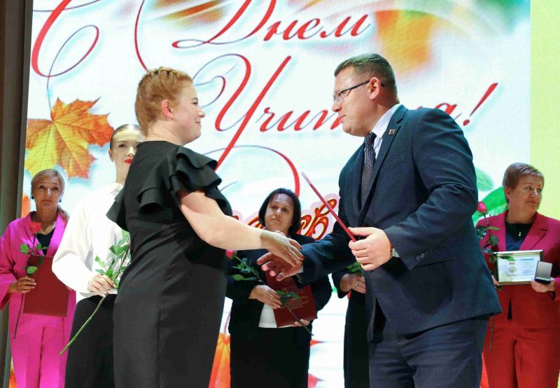 – По традиции в начале октября мы со словами признательности обращаемся к людям, выбравшим благородную профессию педагога. У каждого из нас в жизни есть свой учитель с большой буквы – тот, кто мудростью, душевной щедростью, глубокими знаниями помог познать свой внутренний мир, сделал его богаче, научил строить будущее. Именно от учителя, его профессиональных и человеческих качеств, во многом зависит судьба учеников, завтрашний день страны.