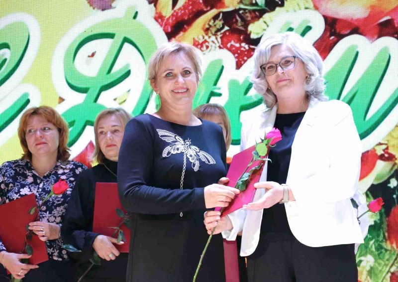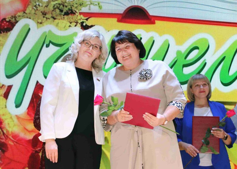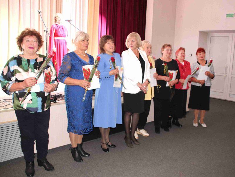 Для поздравления на сцену поднималась председатель районной организации профсоюза работников образования и науки Елена Бруева. Цветы, поздравительные открытки и Благодарственные письма от Могилевской областной организации профсоюзов она вручила ветеранам педагогического труда: Светлане Дмитриевне Тереховой, Раисе Васильевне Капушевой, Светлане Викторовне Глушаковой, Раисе Петровне Бешико, Любови Владимировне Котляровой, Валентине Ивановне Лукьяновой, Антонине Анатольевне Скрипачевой.