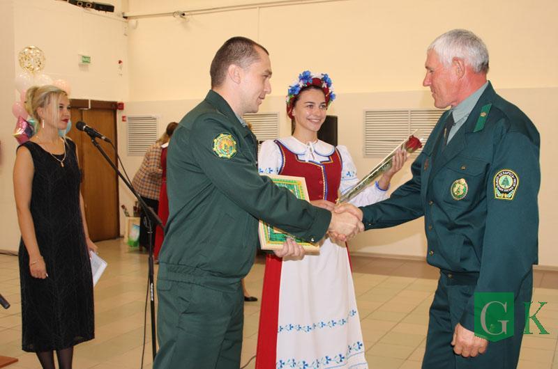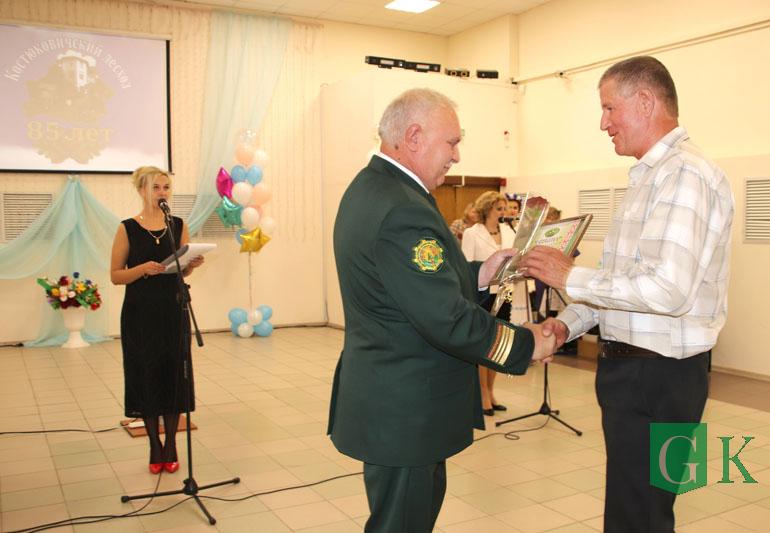 Директор Костюковичского лесхоза Михаил Космачев вручил Благодарность Министерства лесного хозяйства Республики Беларусь и Почетную грамоту Могилевского государственного лесохозяйственного объединения Виктору Кистолу, машинисту трелевочной лесозаготовительной машины, Благодарность генерального директора Могилевского государственного лесохозяйственного объединения Марине Далецкой, ведущему экономисту планово-экономической службы. Ряд работников награжден Почетными грамотами и Благодарностями лесхоза, грамотами Могилевской областной организации профсоюза работников леса и природопользования, нагрудными знаками отличия “За бездакорную службу ў дзяржаўнай лясной ахове Рэспублікі Беларусь”.
