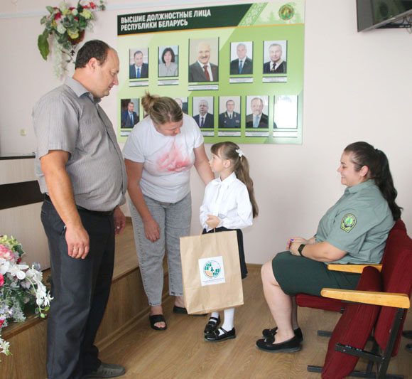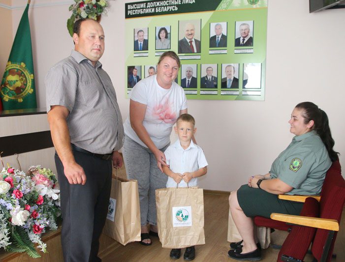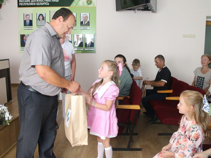 В торжественной обстановке заместитель директора по идеологической работе Олеся Сазоненко и председатель профсоюзной организации лесхоза, начальник бюро по охране труда Виктор Белявцев поздравили будущих первоклассников – детей работников лесхоза – с предстоящим Днем знаний и вручили им пакеты с подарками.