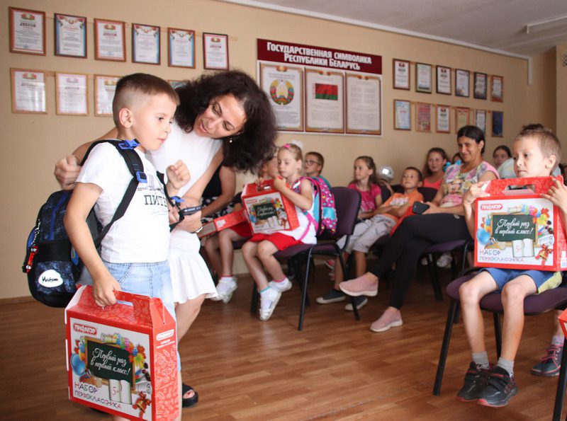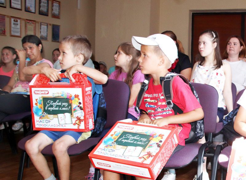В рамках акции «Первый раз – в первый класс» ребятам вручили школьные рюкзаки от профсоюзного комитета и коробка с канцтоварами от администрации. По словам лидера профсоюзной организации ЖКХ Ирины Сидоренко, акция проводится уже четвертый год подряд. Несомненно, это хорошая помощь для семей, в которых есть школьники. Такая поддержка оказывается в рамках общереспубликанских акций «Наши дети» и «Профсоюзы – детям». Так, организацией оказана материальная помощь многодетным и родителям, воспитывающим детей инвалидов.