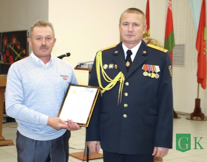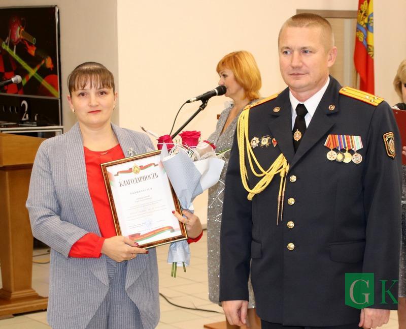 Лариса Герасимова поздравила сотрудников Костюковичского Департамента охраны и вручила Почетные грамоты Костюковичского райисполкома за высокий профессионализм, личный вклад в охрану государственного и частного имущества и в связи с 60-летием со Дня образования Костюковичского Департамента охраны Наталье Козловой, главному бухгалтеру, Максиму Разумову, милиционеру строевого подразделения милиции, Благодарственное письмо райисполкома – Ирине Кулажкиной, дежурной пульта управления, Галине Головченко, сторожу сторожевой охраны, Александру Сугаку, сторожу сторожевой охраны, Вере Кожемяко, старшему инспектору по защите государственных секретов, Юлии Раздериной, специалисту по кадрам группы кадров, Почетной грамотой районного Совета депутатов – Виталий Жисюк, электромонтер охранно-пожарной сигнализации.