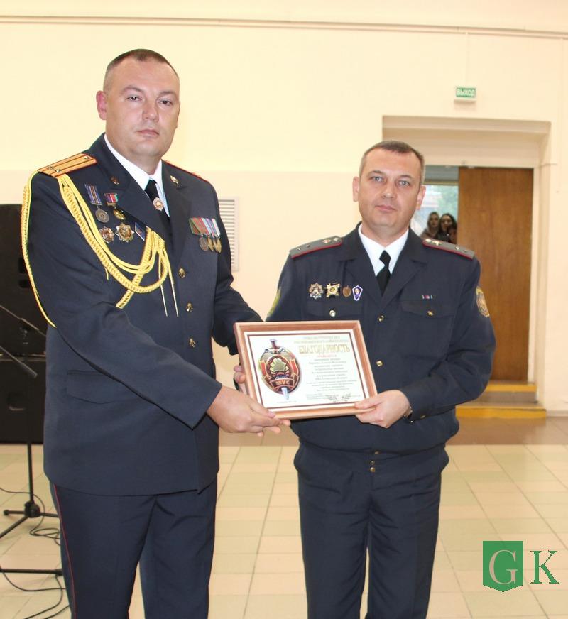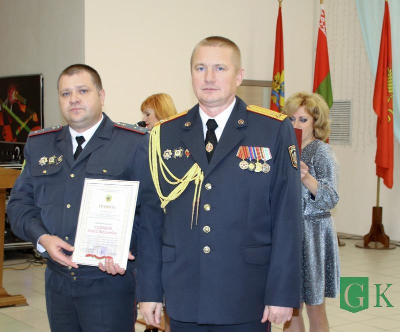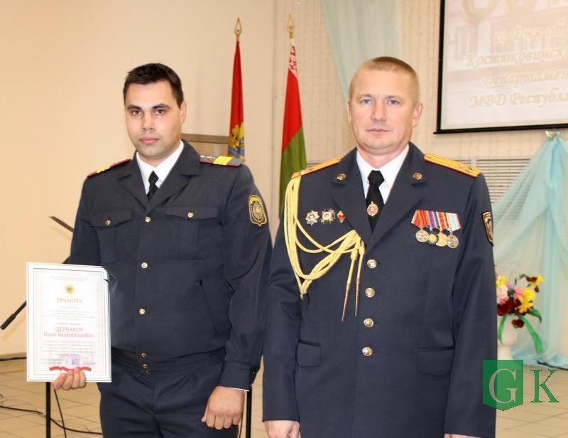 Свои поздравления коллегам адресовал начальник отдела внутренних дел Костюковичского райисполкома Станислав Кондратьев. За умелые профессионально грамотные действия, инициативу, проявленную при проведении служебных мероприятий Благодарность начальника отдела внутренних дел Костюковичского райисполкома объявлены прапорщику милиции Роману Кравцову, милиционеру-кинологу группы задержания строевого подразделения милиции, прапорщику милиции Дмтрию Хомченко, милиционеру группы задержания строевого подразделения милиции, прапорщику милиции Алексею Юрченко, милиционеру строевого подразделения милиции.