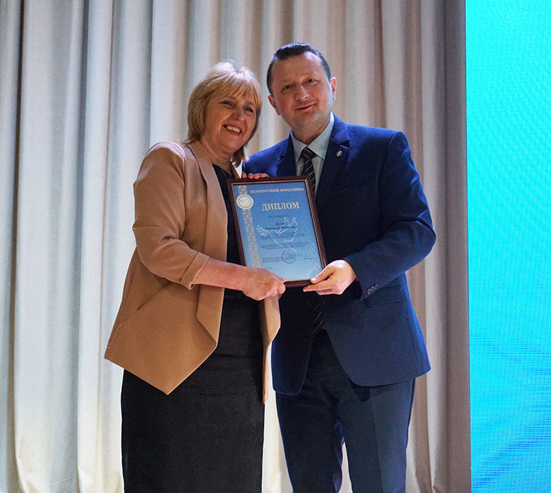 Андрей Александрович выполнил поручение правления Белорусского фонда мира, вручив председателю райисполкома Александре Михеенко высшую награду фонда мира – геральдическую медаль «Заслуженный миротворец Беларуси». Такая же награда была вручена Почетному гражданину Костюковичского района Виктору Ивановичу Сугако. К юбилею Белорусского фонда мира учреждена почетная медаль «Беларускаму фонду міра – 60 год». За вклад в идеи мира и добра этой медалью награждены заместитель председателя райисполкома Валентина Манушенко и председатель районной организации Светлана Старовойтова. Почетные грамоты вручены заместителю генерального директора по идеологической работе, кадрам и быту Белорусского цементного завода Инне Мамченко, начальнику отдела по образованию, спорту и туризму райисполкома Елене Хомченко. Дипломами Белорусского фонда мира награждены активисты районной организации — Татьяна Колосова, заместитель председателя правления районной организации БФМ и Людмила Куст, секретарь правления районной организации.