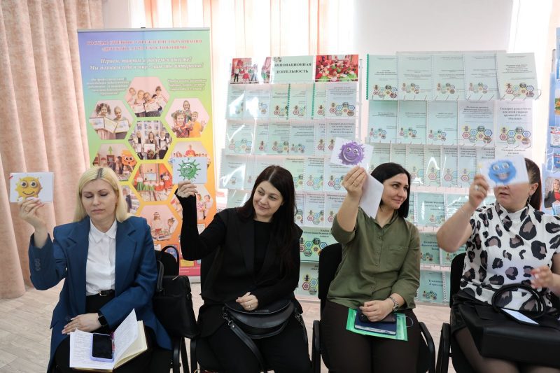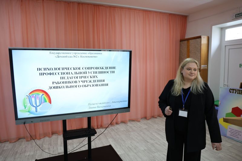 Педагог-психолог детского сада №2 Диана Атамурадова провела с участниками небольшую игру и рассказала о психологическом сопровождении профессиональной успешности педагогических работников в данном учреждении дошкольного образования. Участники круглого стола имели возможность ознакомиться с интересными выступлениями заместителя заведующего по основной деятельности ГУО «Детский сад №4 г. Костюковичи Натальи Москалевой и заведующей ГУО «Санаторный детский сад №3 г. Костюковичи» Ольги Валовик.