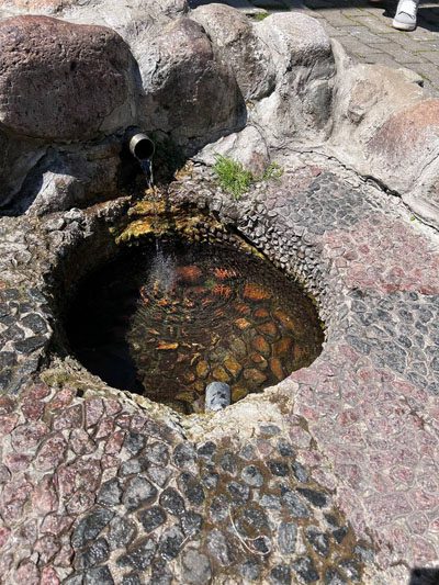 Далее наш путь идет к святому источнику. Целительный родник находим сразу. Подойдя к вершине холма, круто спускаемся вниз, к небольшому храму Рождества Богородицы и кринице с чудотворной водой. Рядом находится купель, в которой можно совершить омовение.