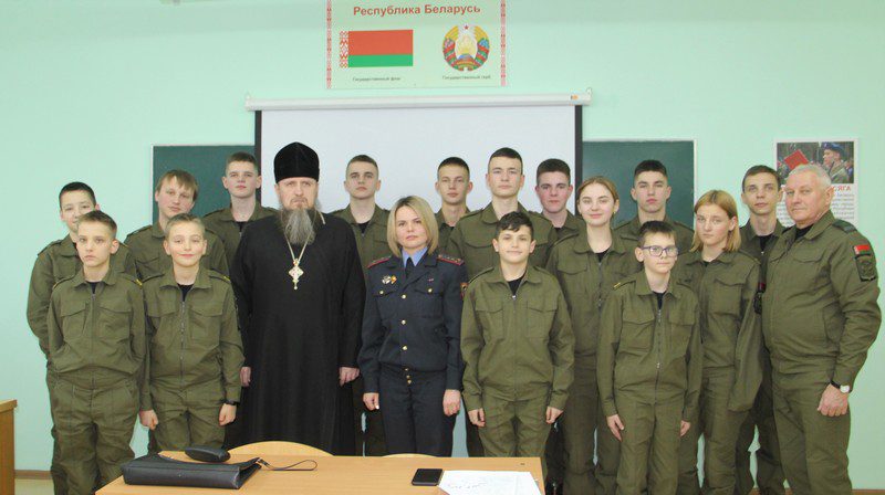 Каждый вторник у курсантов военно-патриотического клуба «Зубр» на базе средней школы №4 проходят учебные занятия. 24 января ребята встретились с настоятелем Свято-Мариемагдалинского храма протоиереем Михаилом.