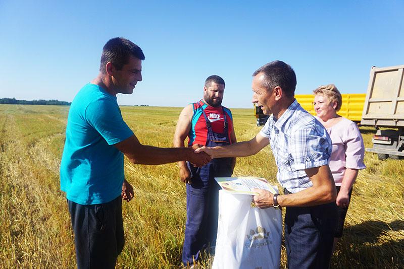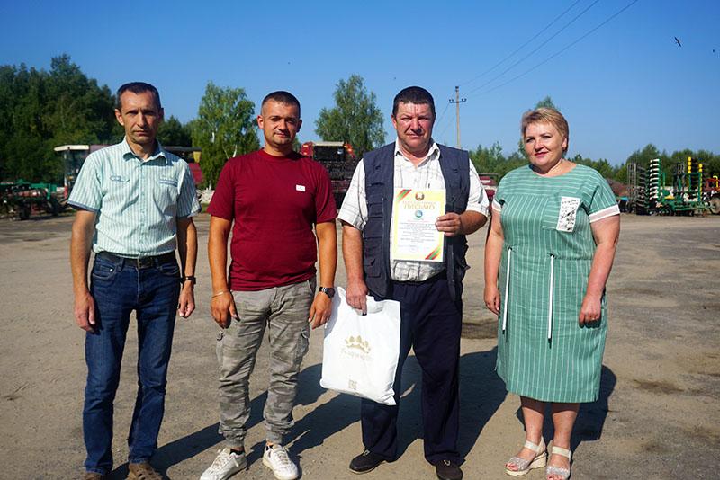 Поблагодарив хлеборобов за безупречную работу и внесенный вклад в уборочную кампанию, председатель районного Совета депутатов Лариса Герасимова и председатель районного объединения профсоюзов Виктор Суденков вручили аграриям благодарственные письма и подарки.
