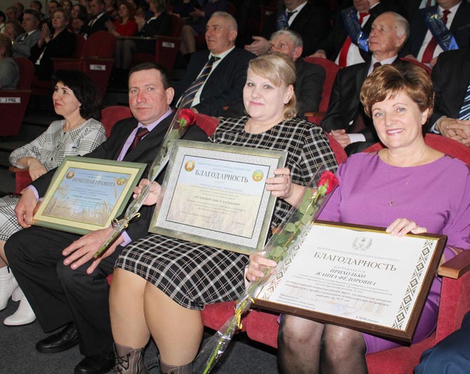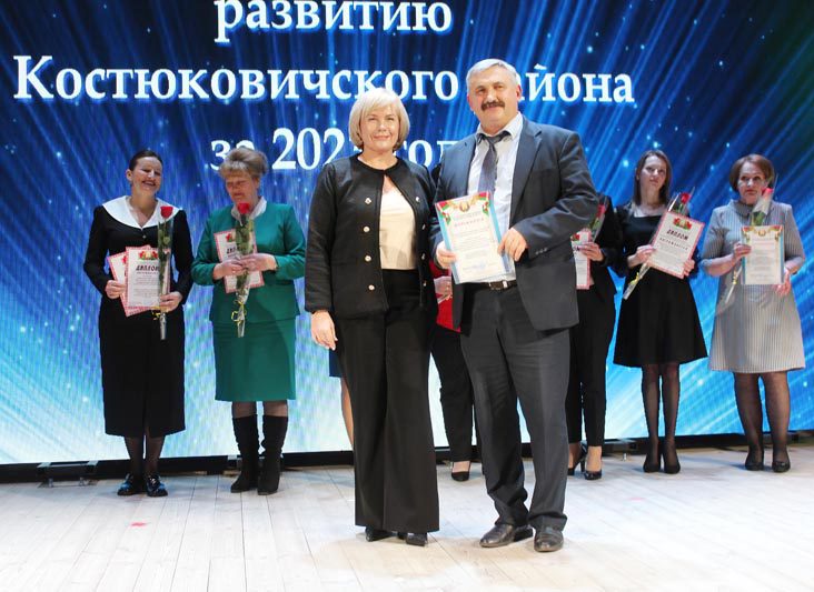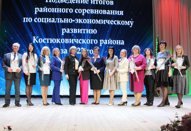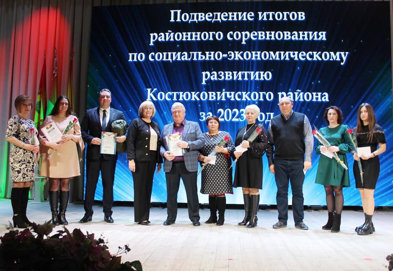 Более двух часов шла церемония награждения. На сцену поднимались победители районного соревнования в различных отраслях и сферах деятельности, а также представители в номинации «Лучший по профессии». Их имена, согласно решению райисполкома, занесены на районную Доску почета. Вручали Почетные грамоты и Дипломы райисполкома, Благодарности председателя Костюковичского райисполкома, Почетные грамоты и Благодарственные письма районного Совета депутатов и, конечно же, денежные премии и цветы.