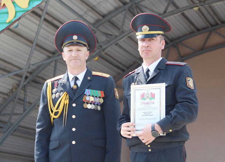 Сергей Волков и Евгений Коваленок вручили награды отличившимся милиционерам и ветеранам органов внутренних дел. Так, грамоты управления внутренних дел Могилевского облисполкома удостоен майор милиции Сергей Евдокимов, старший оперуполномоченный группы по борьбе с экономическими преступлениями Костюковичского РОВД. Благодарность управления внутренних дел Могилевского облисполкома объявлена капитану милиции Марии Данилкиной, инспектору уголовно-исполнительной инспекции Костюковичского РОВД, старшему сержанту милиции Сергею Прохоренко, милиционеру изолятора для временного содержания лиц задержанных или заключенных под стражу Костюковичского РОВД.