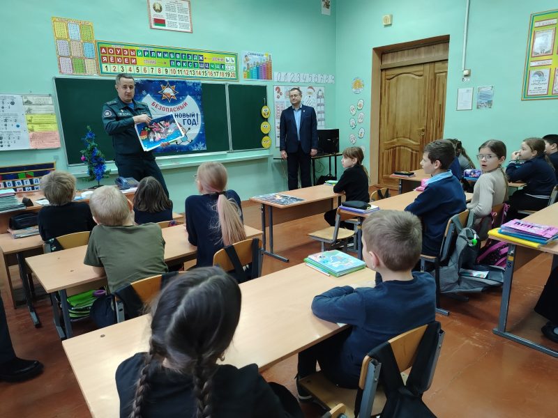 Павел Добрыднев и Елена Савицкая разъяснили учащимся правила использования пиротехники, в том числе правила безопасности при использовании бенгальских огней, а также рассказали о зимних опасностях для детей, включая нахождение у водоемов, о правилах безопасной установки новогодней ели и важности автономных пожарных извещателей.
