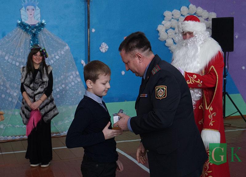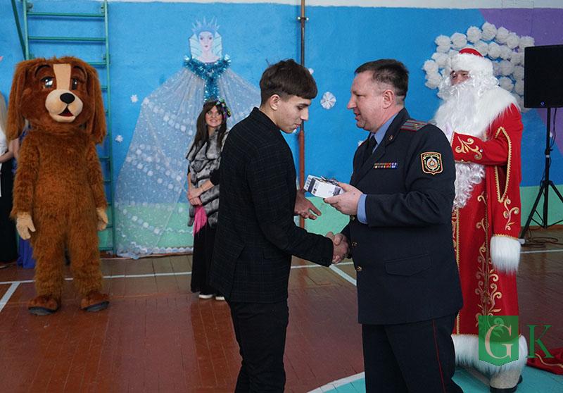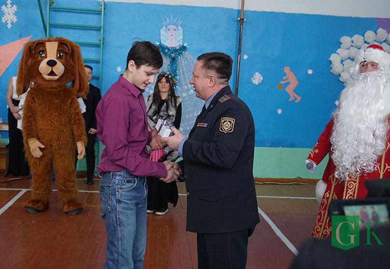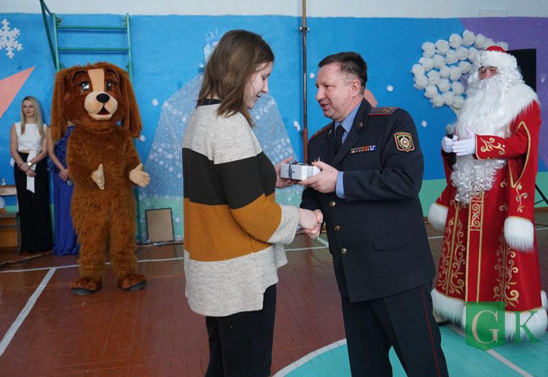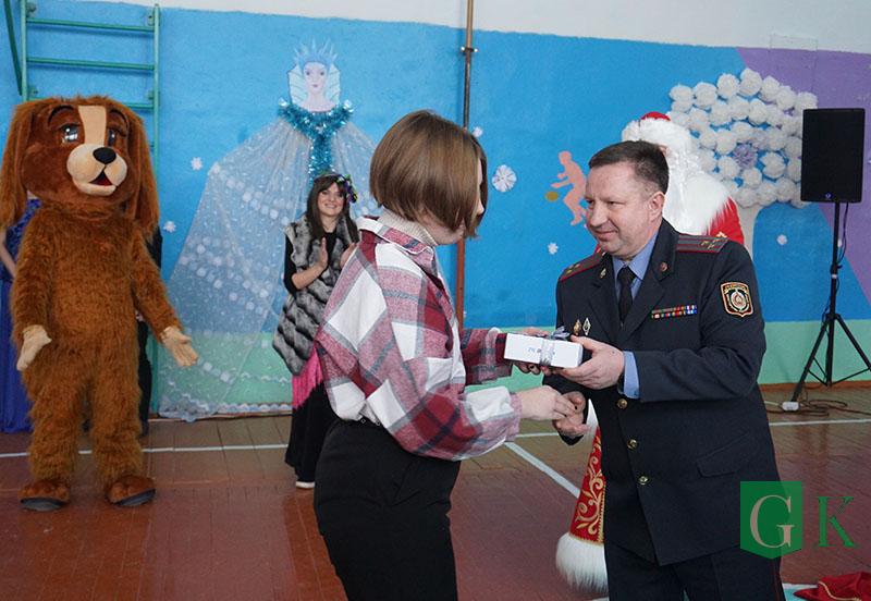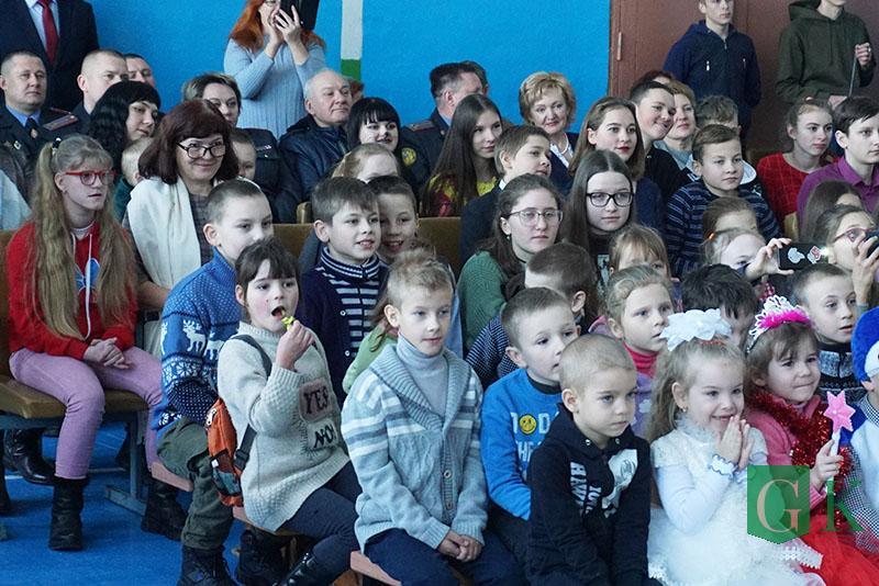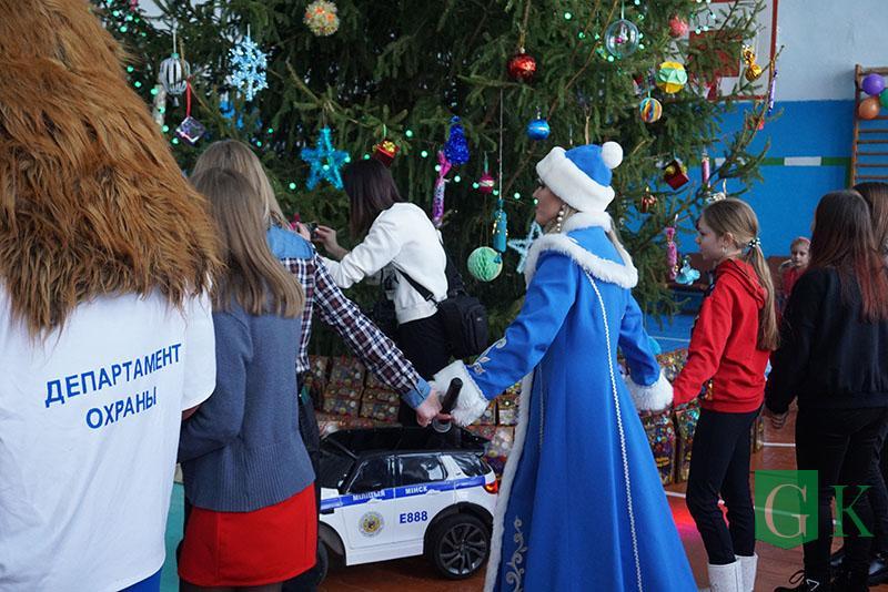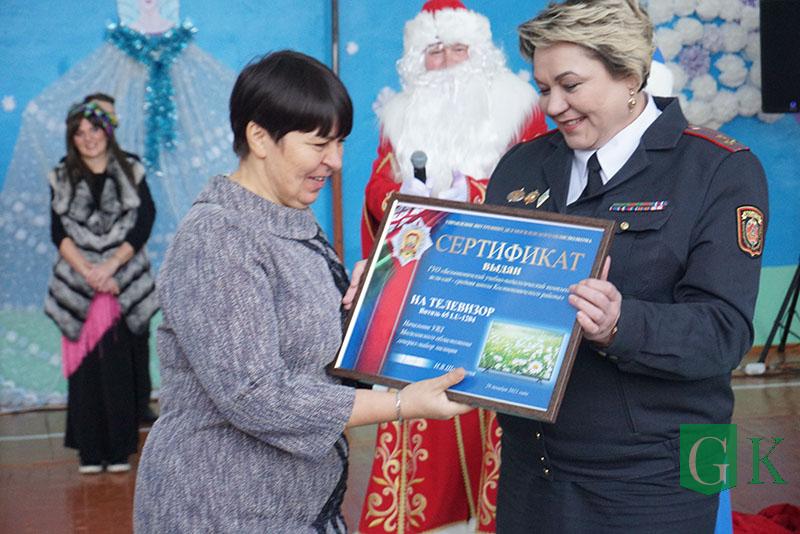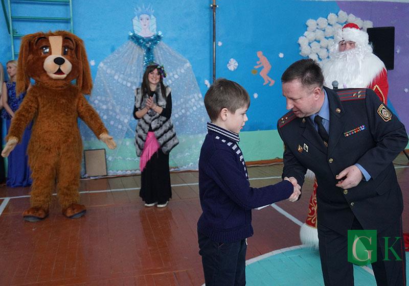 УВД Могилевщины презентовало школе телевизор, а сотрудники Департамента охраны МВД подготовили праздничное представление «В поисках Нового года».