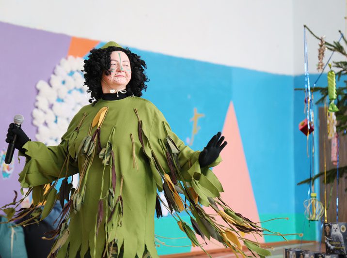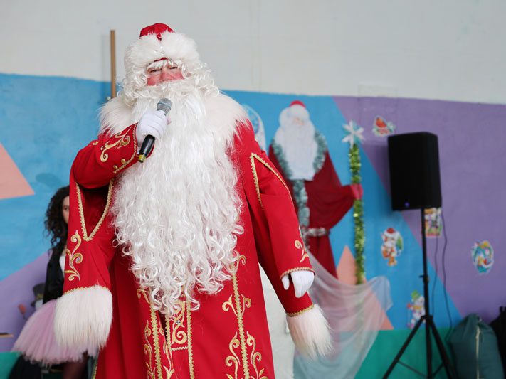 Как следует подкрепившись вкусной кашей, примерив экипировку и познакомившись со служебными собаками, дети и их родители переместились внутрь учебного заведения для продолжения праздника. Артисты подготовили замечательное театрализованное представление, во время которого все – и дети, и взрослые – с энтузиазмом танцевали, пели, водили хороводы.