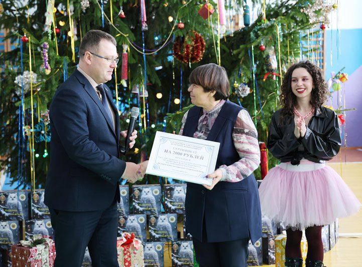 – На праздники следует ходить с подарками, и поэтому вашей школе от районного исполнительного комитета дарим сертификат на две тысячи рублей на укрепление материально-технической базы, – сказал глава района.