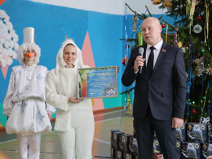 В этот день теплые пожелания звучали и от начальника Костюковичского РОВД Александра Ковалева. Александр Иванович тоже вручил подарок – сертификат на приобретение двух комплектов лыжного инвентаря.