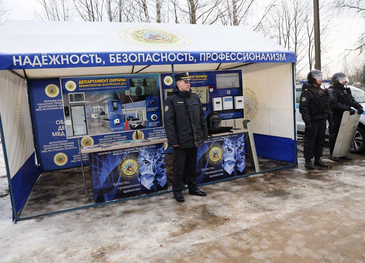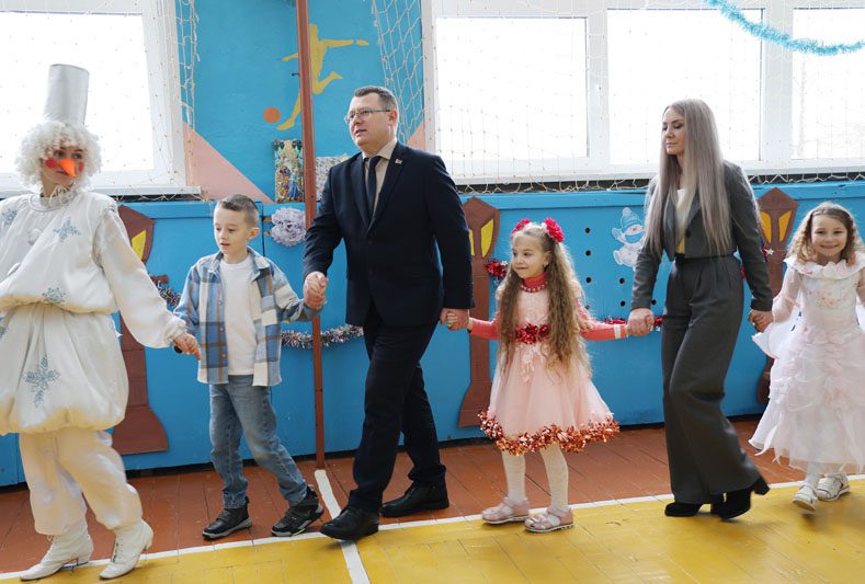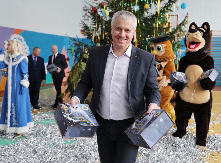 К словам поздравления присоединился глава Костюковичского района Вячеслав Моксачев, который отметил, что именно Белынковичи дали старт новогодним утренникам в районе. Вячеслав Николаевич поблагодарил организаторов праздника – Департамент охраны МВД – и вручил его представителям сувенир – пояс-оберег, сотканный мастерицей нашего района Валентиной Волковой.