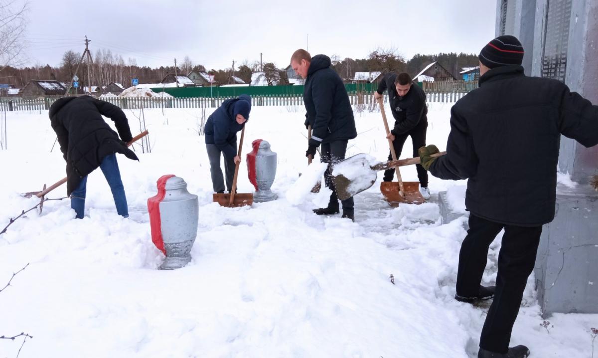 Также волонтеры из ГУО «Средняя школа № 4 г. Костюковичи» почистили от снега братскую могилу в урочище «Боровец».