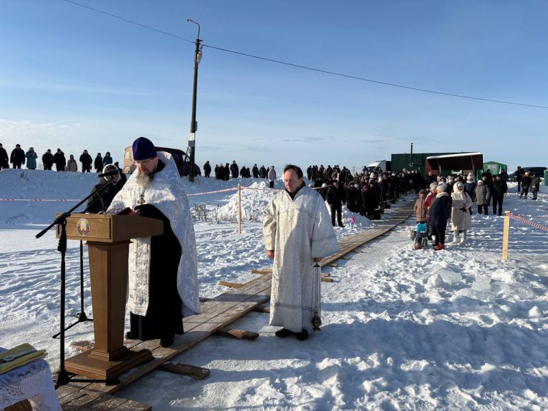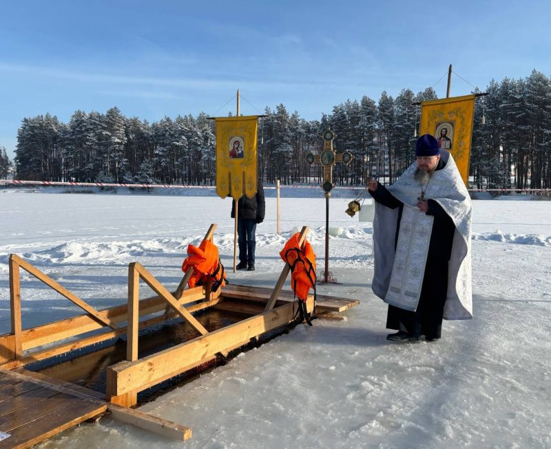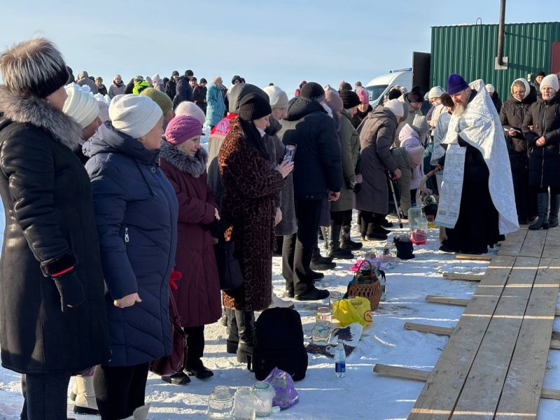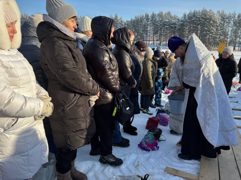 А в урочище Боровец по доброй традиции настоятель Свято-Мариемагдалинского храма отец Михаил провел молебен с освящением воды в проруби.