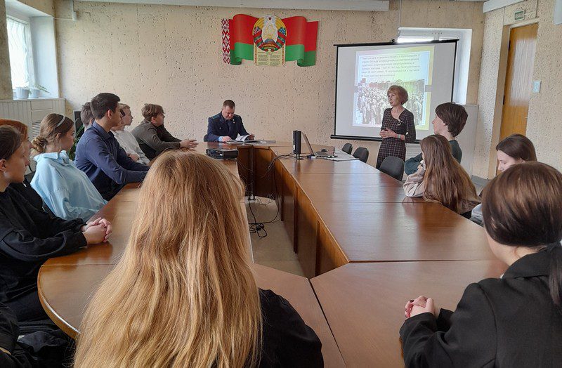 Учащиеся 11 класса ГУО «Средняя школа № 1 г. Костюковичи» приняли участие в музейном занятии «И помнит мир спасенный, мир вечный, мир живой…», которое было подготовлено и проведено в Костюковичском краеведческом музее с участием прокурора района Булахова Сергея Олеговича.