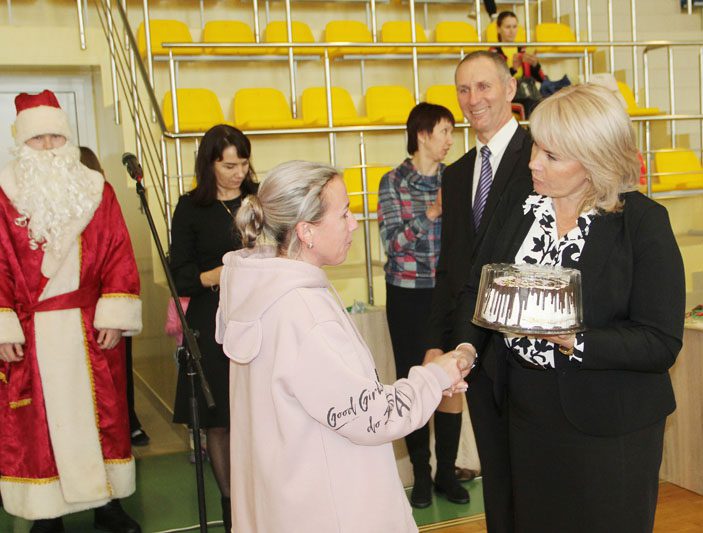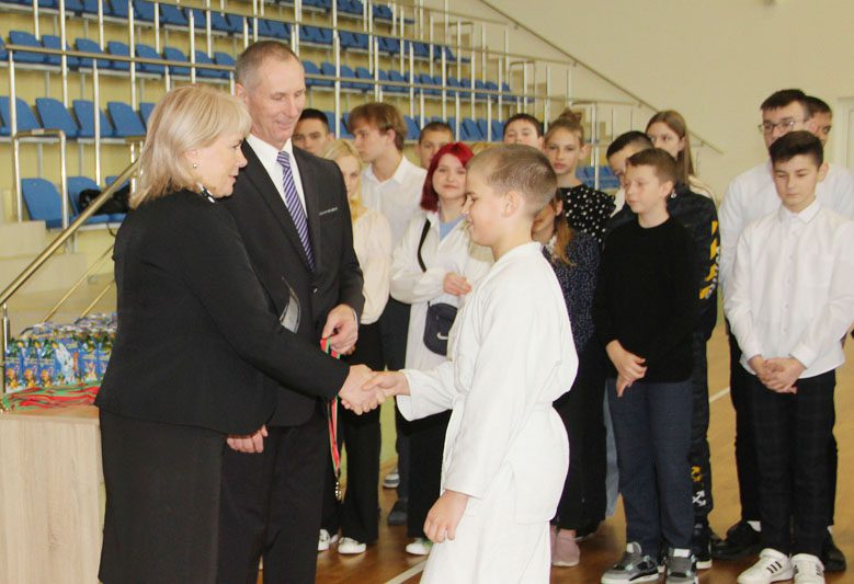 Команде, которая приехала из Российской Федерации, Валентина Манушенко в знак уважения вручила сладкий сувенир. Коробки с конфетами от Костюковичской районной организации ОО «Белорусский фонд мира» достались лучшим юным спортсменам, достигших определенных результатов в различных видах спорта.