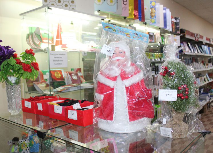 – К праздникам мы предлагаем различные елочные игрушки, сувениры. Есть в продаже и пользующиеся в последнее время спросом стеклянные шары. Их цена не такая высокая – 15 рублей за набор из восьми штук. А еще у нас самая бюджетная цена во всем городе на «дождик»: 92 копейки за полтора метра, – рассказала продавец магазины Татьяна Кулик. – Есть Деды Морозы и Снегурочки белорусского производства, музыкальные игрушки, мишура, елки искусственные. Метровая, например, обойдется в 80 рублей, а красавица с натуральными шишками – почти 250 рублей. На подарок родным и друзьям можно приобрести товары для дома, одежду, постельное белье.
