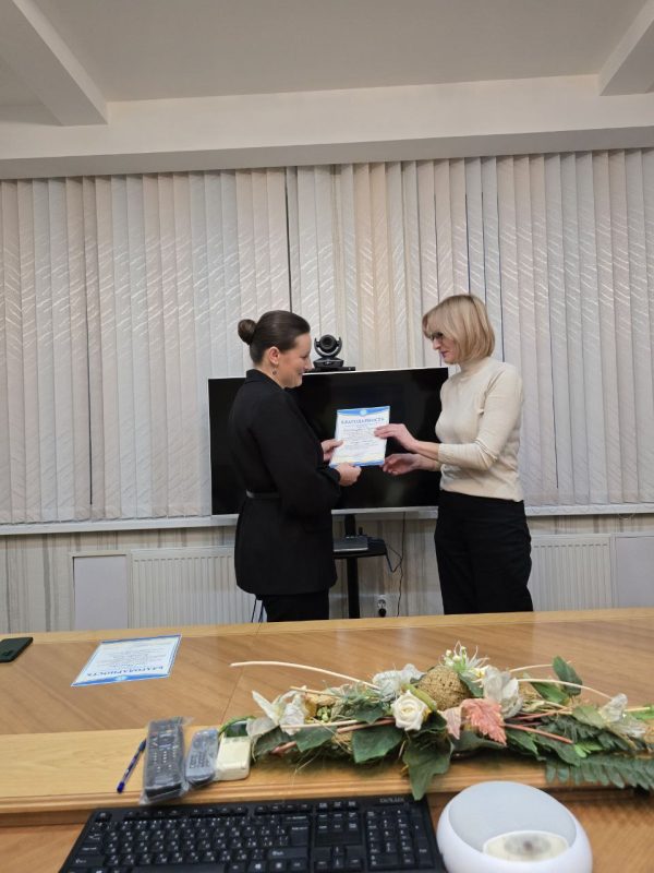 Директор гимназии Наталья Лазаренко рассказала о проведении аттестации учащихся на II и III ступенях общего среднего образования, а также вручила работникам завода Колядко Олесе Леонидовне и Вострикову Сергею Михайловичу Благодарственные письма за плодотворное сотрудничество и воспитание детей.