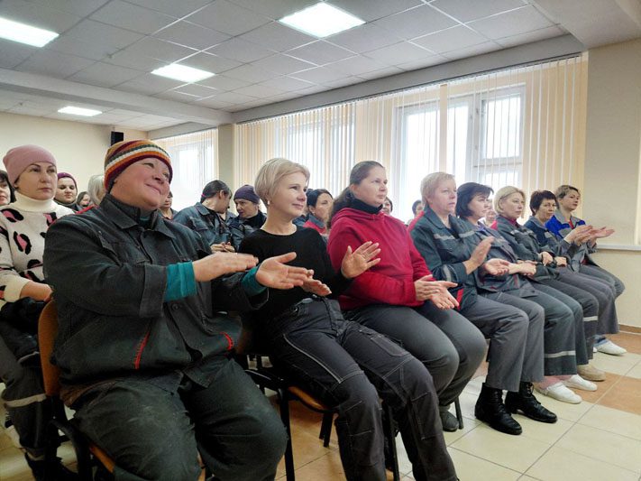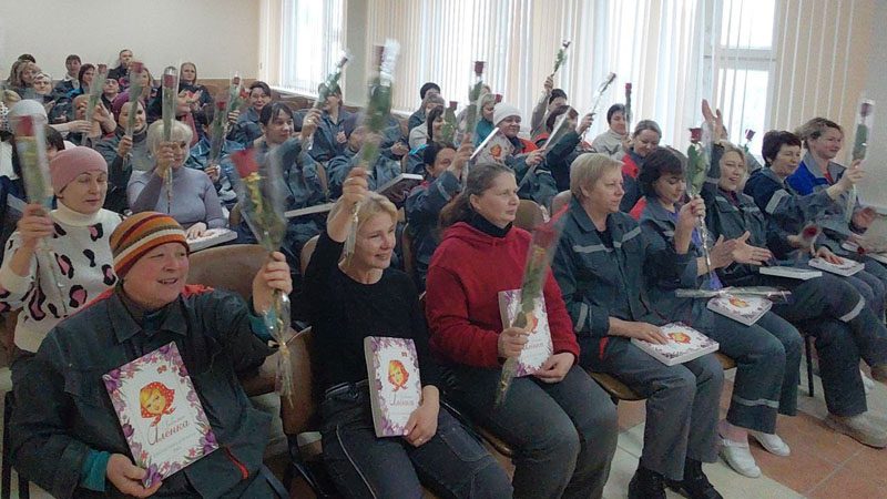 Профсоюзная организация завода, возглавляемая Александром Листратенко, совместно с Ниной Дылико, заместителем генерального директора по идеологической работе, организовали торжественное мероприятие для сотрудниц цехов. В своих поздравлениях они подчеркнули важность роли женщин в коллективе и значимость их вклада в общее дело.
