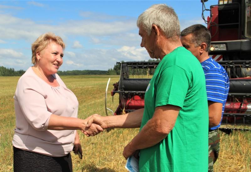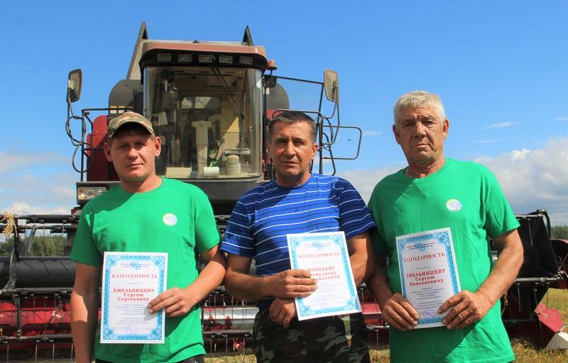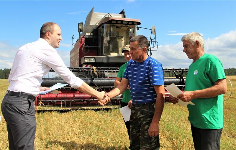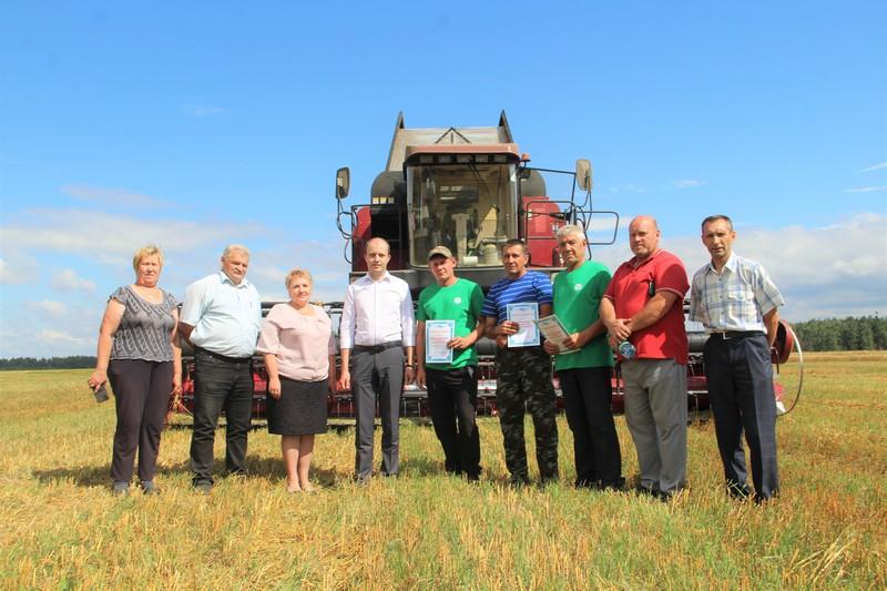 В Костюковичском районе активными темпами продолжается уборочная кампания. Передовики в эти дни не остаются без внимания – их чествуют прямо в поле, на зернотоках, стараясь не отвлекать от работы.