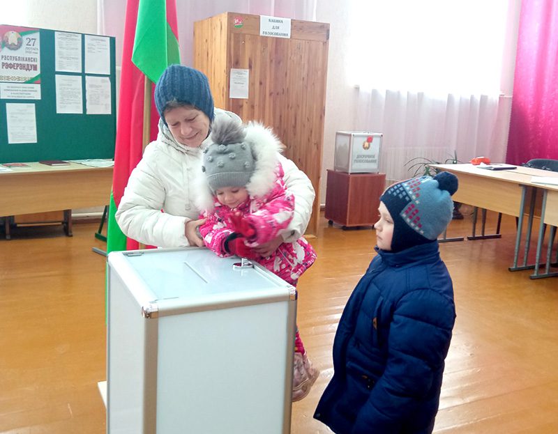 – Люди приходят на участок в хорошем настроении, идут семьями. Родители, бабушки и дедушки голосуют за мирное и стабильное будущее своей страны. Опускать бюллетень в урну для голосования доверяют детям, и это очень символично: гражданско-патриотическое воспитание начинается с ранних лет. Родители собственным примером показывают дочерям и сыновьям, насколько важно участвовать в выборах и референдумах, определять будущее своей страны, – подчеркивает председатель участковой комиссии по референдуму Наталья Авхуцкая.