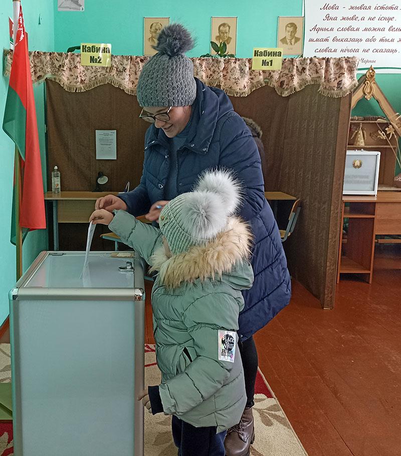 – Решила проголосовать в основной день, пришла с праздничным настроением. Работники культуры подготовили для жителей отличный концерт. Меня, как и любую маму, беспокоит будущее детей. Я отдала свой голос за родную Беларусь и мирное небо над ней, – говорит молодая мама.