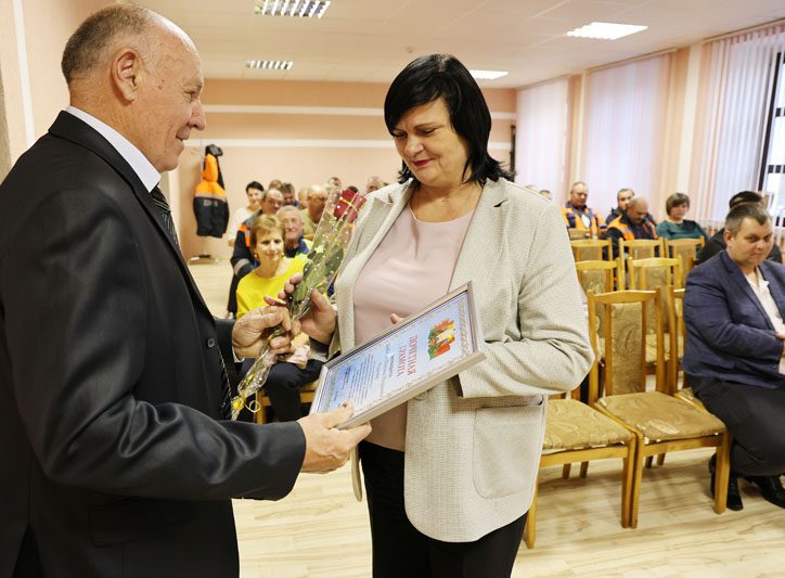 На торжественное собрание приехали почетные гости – глава Костюковичского района Вячеслав Моксачев, заместитель генерального директора РУП «Могилевавтодор» Сергей Тылец и другие представители республиканского предприятия.