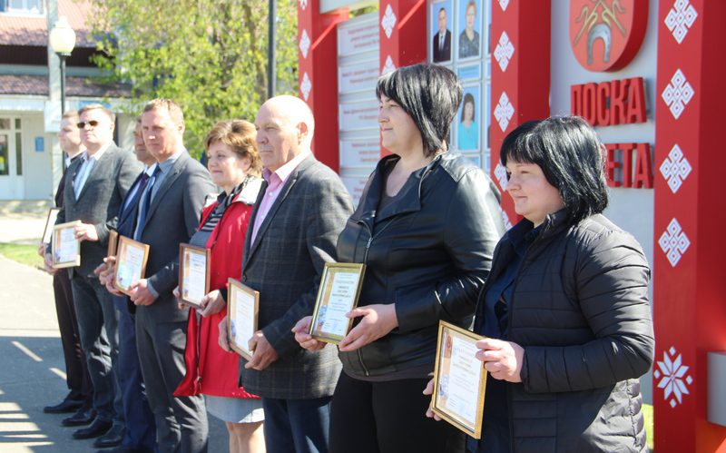 Председатель райисполкома Александра Михеенко адресовала теплые поздравления людям труда и вручила свидетельства о занесении на районную Доску почета.