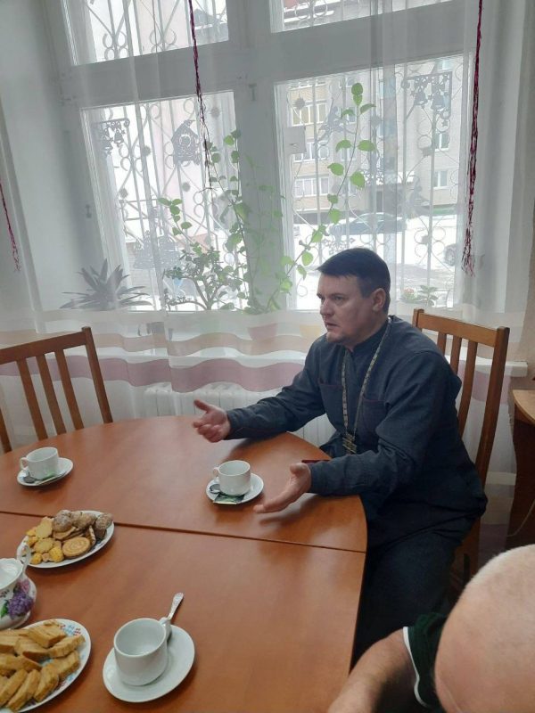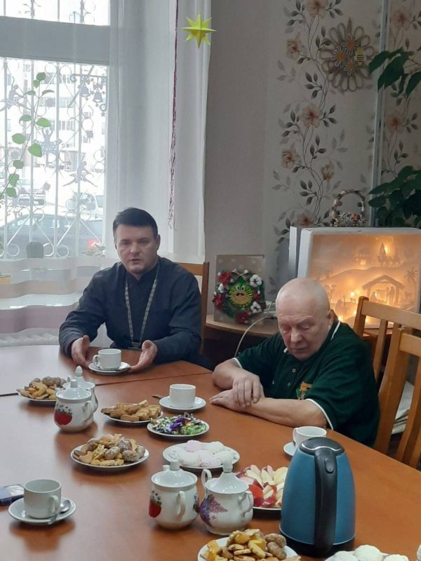 Затем священник побывал в отделении дневного пребывания для инвалидов и лиц пожилого возраста. За чаем и угощением о.Георгий рассказал о празднике Рождества, поздравил и пожелал здоровья и Божьего присутствия в жизни каждого человека.