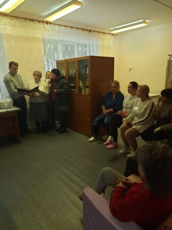 11 января настоятель Прихода в честь иконы Божией Матери Казанской в рамках республиканской акции «От всей души» побывал в Забычанской больнице сестринского ухода. О. Георгия поздравил постояльцев и медперсонал с Рождеством Христовым и вручил сладкие подарки. А хор Прихода в своем исполнении подарил пожилым людям праздничные колядки.
