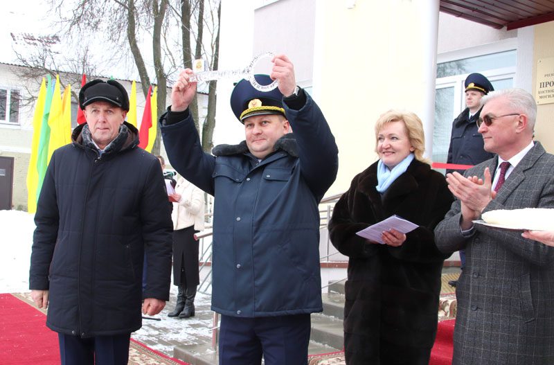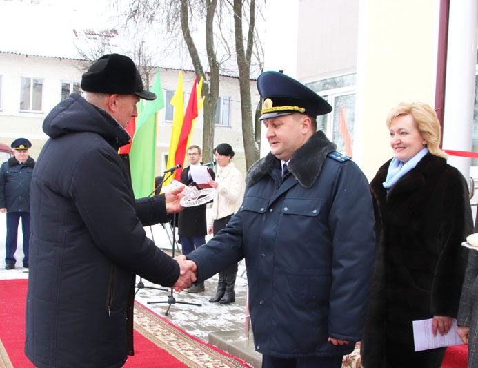 Одним из торжественных моментов мероприятия стала передача символического ключа. Право вручить его прокурору района Сергею Булахову было предоставлено начальнику ПМК-260 Петру Ермашенвичу. К слову, именно это предприятие выступило главным подрядчиком при реализации проекта. Двухэтажное здание возведено и сдано под ключ в кратчайшие сроки (за 6 месяцев) благодаря профессиональной и слаженной работе строительной организации.