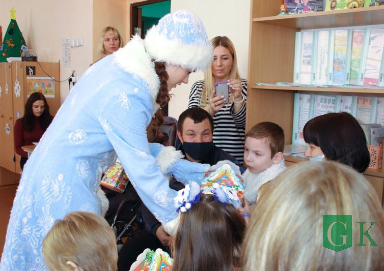 От районного исполнительного комитета воспитанники центра получили не только сладкие подарки, а игрушки и развивающие конструкторы. Председатель Костюковичской районной организации Белорусского профессионального союза работников образования и науки Виктор Суденков подарил центру электрический чайник для кабинета социально-бытовой адаптации и посуду. Особо хочется отметить ОАО «Белорусский цементный завод», который ежегодно дарит подарки воспитанникам центра. На утреннике руководство завода порадовало обучающихся сладкими подарками «Паровозик». Дети были просто в восторге. Благодаря Костюковичскому отделению Департамента охраны у центра появились новые развивающие игрушки и дидактические пособия. Представители Костюковичского районного потребительского общества доставили ребятам фрукты и сладости. Сладости, одноразовые маски, развивающие наборы и канцелярские принадлежности подарили представители филиала №712 «АСБ Беларусбанк». Работники унитарного коммунального производственного предприятия «Костюковичский жилкоммунхоз уже не первый раз удивляют обучающихся и воспитанников ЦКРОиР. В этом году они проявили инициативу подарить новогодние игрушки центру и совместно с детьми нарядить елку к утреннику.