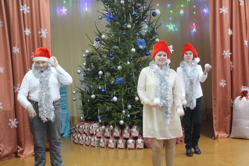Развлекательную программу для участников новогоднего праздника провели работники Центра и юные волонтеры средней школы № 2 и районной гимназии. Волшебная сказка с Дедом Морозом, Снегурочкой, Бабой Ягой и Зимой порадовала как самих детишек, так и их родителей. Глаза ребят сияли восторгом и радостью, когда они водили хоровод и танцевали вместе со сказочными героями. Многие из детей выучили стихотворения и традиционно рассказали их Дедушке Морозу, получив в подарок от него мягкие игрушки, краски и альбомы для рисования.