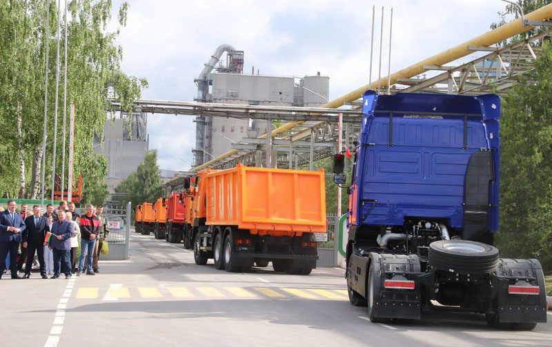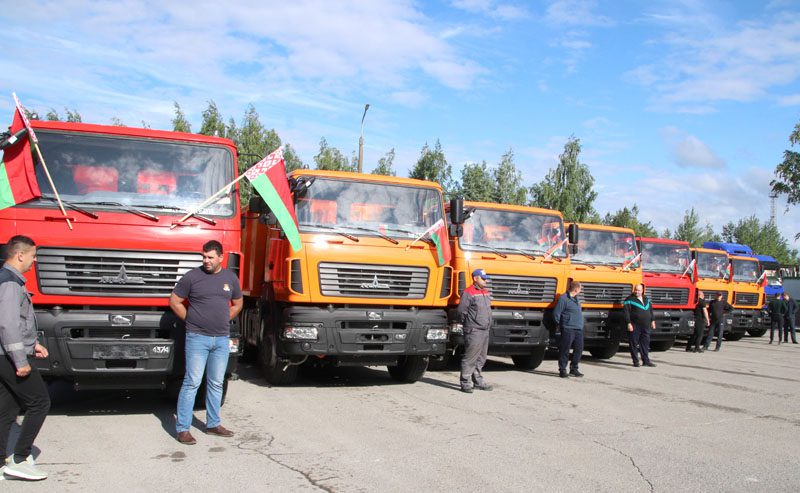 Новенькие МАЗы нашли сегодня своих владельцев. Ключи от девяти машин в торжественной обстановке получили лучшие водители ОАО «Белорусский цементный завод».