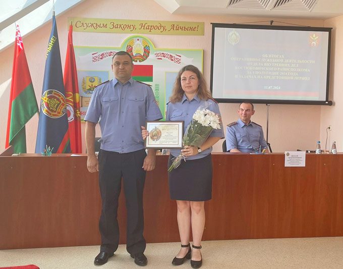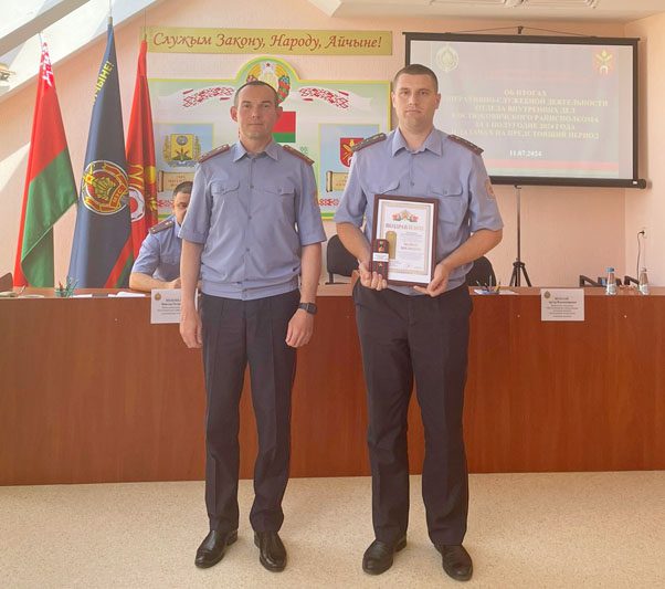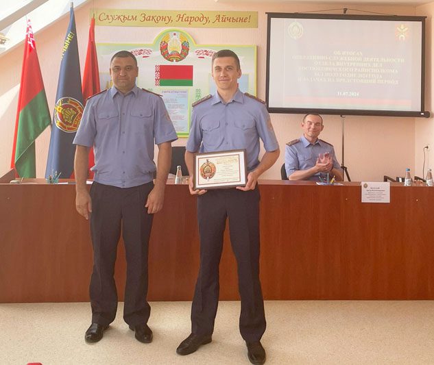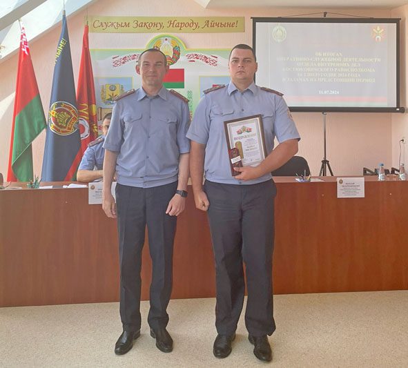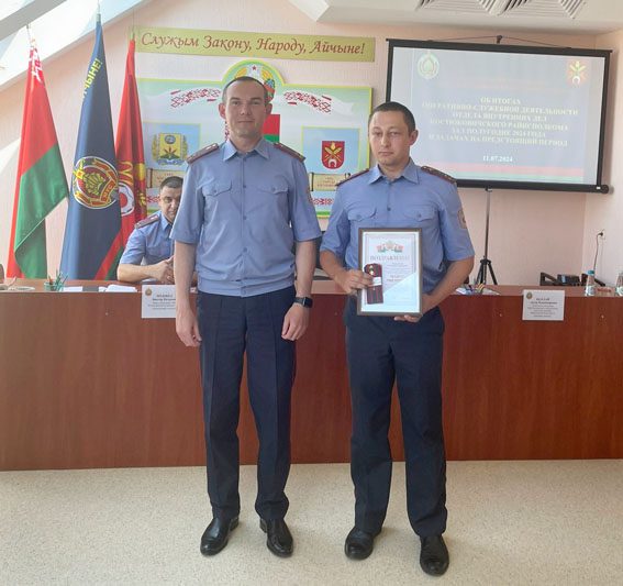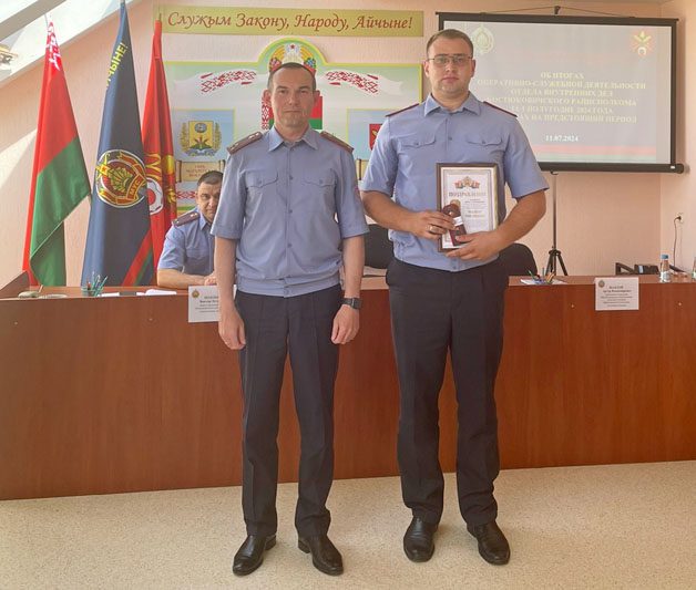 Не обошлось без заслуженных наград и в этот раз. Так, Благодарность начальника УВД Могилевского облисполкома была объявлена начальнику изолятора для временного содержания лиц, задержанных или заключенных под стражу, майору милиции Олегу Алфимову. Благодарность начальника отдела внутренних дел Костюковичского райисполкома объявлена начальнику инспекции по делам несовершеннолетних, майору милиции Виктории Снытко, заместителю начальника межрайонного отдела ГАИ (по обслуживанию Костюковичского и Хотимского районов) отдела внутренних дел – начальнику МРЭО ГАИ, майору милиции Юрию Повлюченко, а также начальнику отделения уголовного розыска, капитану милиции Роману Лазареву.