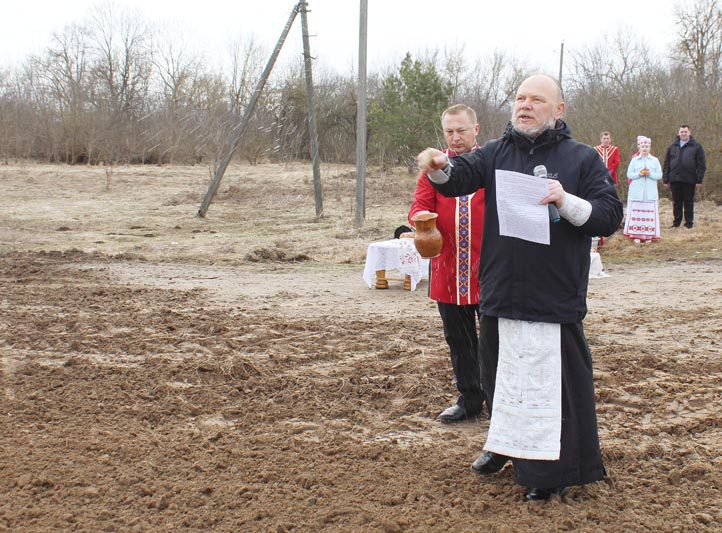 Настоятель Свято-Крестовоздвиженского храма протоиерей Сергий Подоляк провел обряд благословления, освятив зерно и матушку-землю.