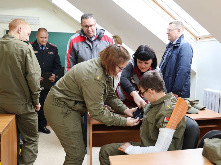 После конструктивного диалога – встреча с ребятами. Они как раз проходили теоретические и практические занятия в кабинетах, тире и на плацу. «Зубрята» не только продемонстрировали свои навыки, но и пригласили депутата и сенатора поучаствовать в занятиях в качестве «потерпевших»: измерили давление, наложили шину.