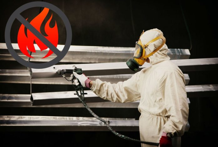 Огнезащитные краски, эмали и лаки поглощают тепло, высвобождают воду и выделяют ингибиторные газы. Есть 2 типа красок – вспучивающиеся и невспучивающиеся. Невспучивающиеся краски не увеличивают толщину слоя при нагревании. А толщина слоя вспучивающейся краски увеличивается в 10-40 раз. При этом образуется вспененный слой. Этот слой обладает высокими теплоизоляционными свойствами.