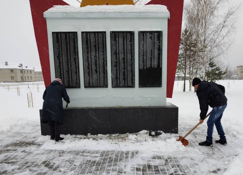 К акции присоединились и учащиеся Муравильской средней школы, которые навели порядок у памятного знака. Ребята освободили от накопившегося снега территорию у обелиска, расчистили подход к памятнику, а также убрали снег с постамента.